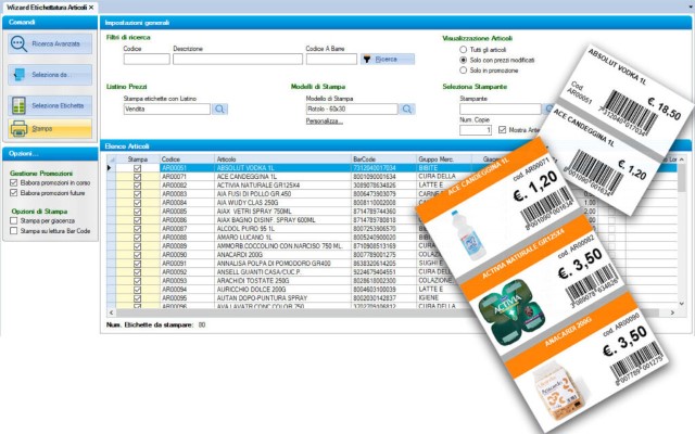 Inoltre potrai stampare Etichette e Frontalini dei prodotti in promo.