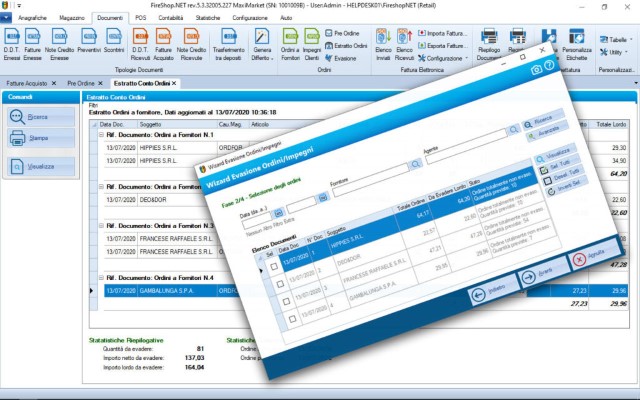 - Gestione completa dei documenti, con una dettagliata gestione degli ordini, preordini, rimanenze, impegni