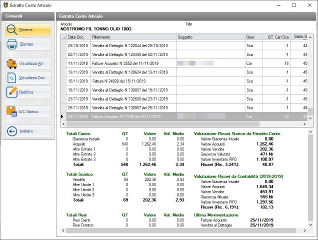 - Gestione dell’estratto conto di magazzino per verifiche e/o riscontri