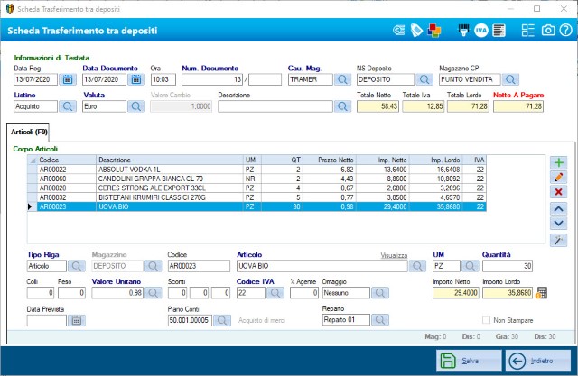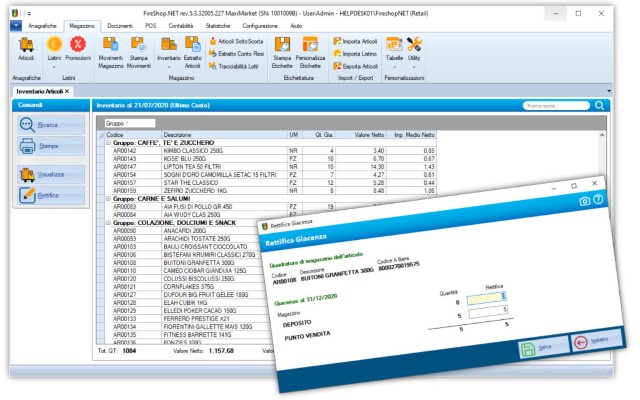Particolare attenzione è stata dedicata al carico della merce, alla valorizzazione dei prezzi di vendita, alla stampa delle etichette, alla gestione del magazzino ecc.