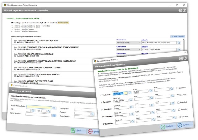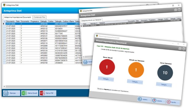 - Un sistema integrato che consente di caricare automaticamente i documenti e i listini dei vari fornitori sia tramite file che attraverso la fattura elettronica
