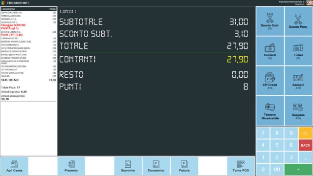 Inoltre ha integrato una completa gestione delle fidelity card, quindi raccolta punti, gestione premi, sconti riservati.